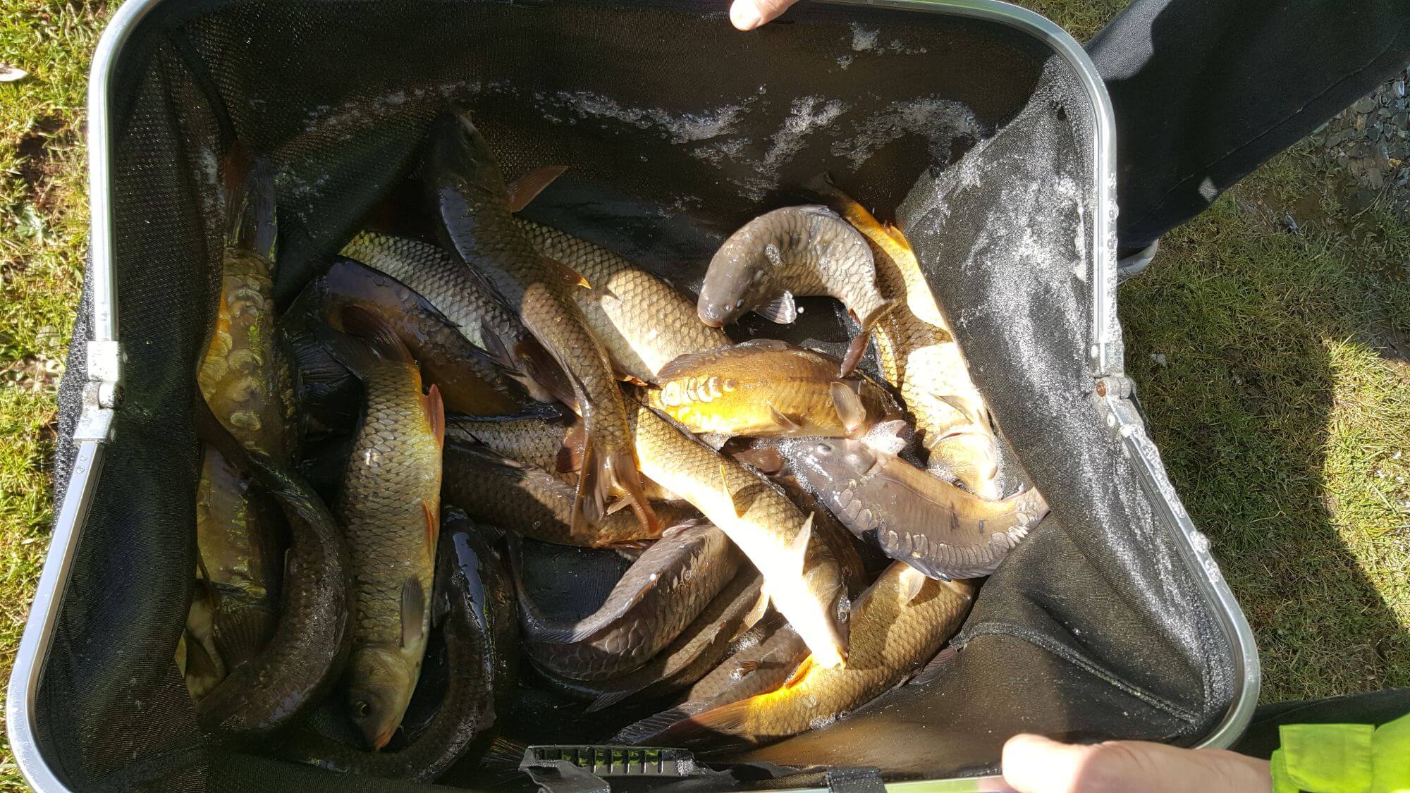 195lb (roughly 200 fish) of a mix of common and mirror carp go into lake 1.